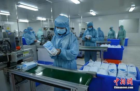 資料圖:四川成都口罩生產(chǎn)線上忙碌的工人。中新社記者 劉忠俊 攝