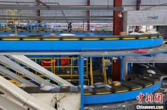 資料圖:快遞包裹正在分撥流水線上快速傳輸。許傳寶 攝