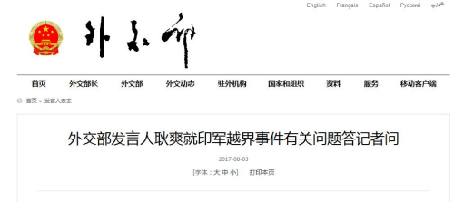 外交部網(wǎng)站8月3日傍晚發(fā)布了題為“外交部發(fā)言人耿爽就印軍越界事件有關(guān)問題答記者問”消息表示,截至8月2日下午,印軍仍有48人連同1臺推土機非法滯留在中國領(lǐng)土上,此外還有大量武裝人員集結(jié)在邊界線上和邊界線印方一側(cè)。他指出,印軍不論多少人員非法越界并滯留在中國境內(nèi),其性質(zhì)都是對中國領(lǐng)土主權(quán)的嚴(yán)重侵犯,嚴(yán)重違反《聯(lián)合國憲章》,構(gòu)成國際不法行為,印方應(yīng)為此承擔(dān)相應(yīng)的責(zé)任。并稱,印度方面的所作所為“絕不是為了和平”。