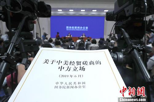 6月2日,國(guó)務(wù)院新聞辦公室發(fā)布《關(guān)于中美經(jīng)貿(mào)磋商的中方立場(chǎng)》白皮書(shū),并在北京舉行新聞發(fā)布會(huì)。 中新社記者 張宇 攝