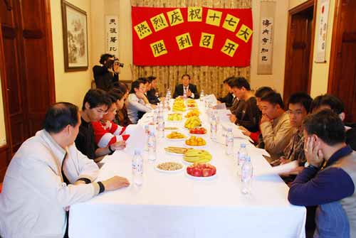 各與會學聯(lián)主席也紛紛暢所欲言,熱烈討論了各自學習十七大的心得體會,表示一定將會議精神傳達給自己所在學聯(lián)的每位中國學生。