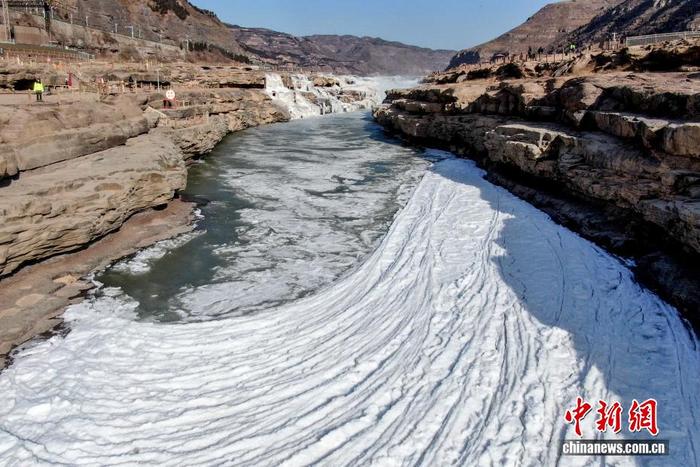 山西吉縣:黃河壺口瀑布現(xiàn)流凌封河景觀