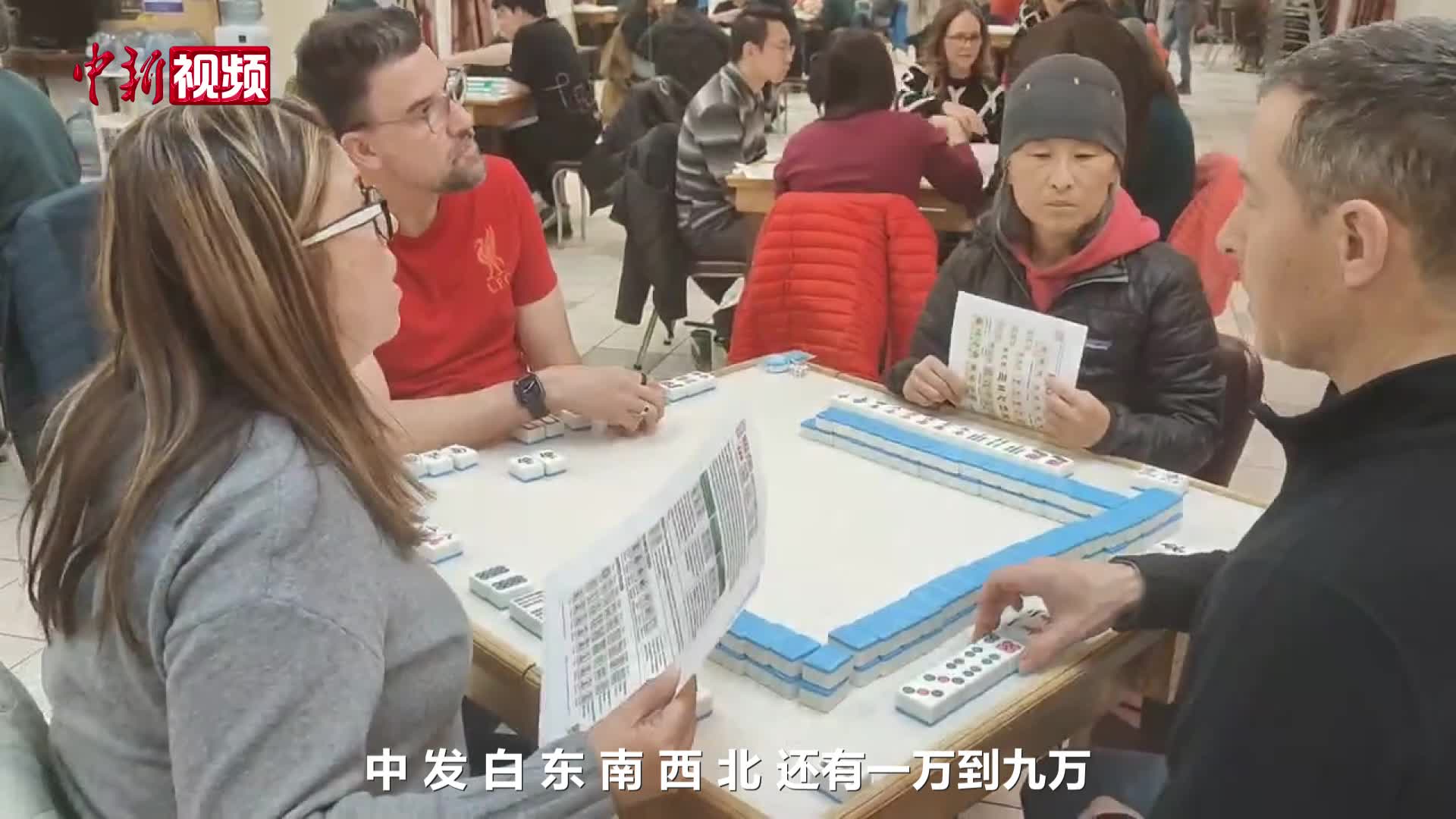 加拿大人學(xué)打麻將 拿著對照表說“碰、杠、吃”