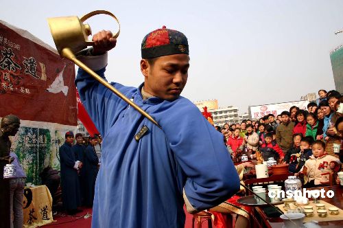 1月8日,宜昌市西陵新春廟會(huì)在夷陵廣場(chǎng)舉行,廟會(huì)在突出喜慶的同時(shí),展示了宜昌民俗、民間文化。龍燈、彩船、腰鼓、茶藝、根雕、盆景、燈謎、剪紙、民俗攝影、歌舞等20多臺(tái)風(fēng)土人情、民俗、民間文化節(jié)目,具有傳統(tǒng)節(jié)日歡快熱烈的氛圍。(中新社/譚大學(xué) 攝)