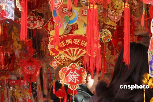 1月16日,鄭州街頭一片片賣年畫、燈籠的喜慶氣氛。春節(jié)一天天臨近,鄭州街頭的年味也是越來越濃了,對(duì)聯(lián)、年畫、大紅燈籠等民俗裝飾品倍受青睞。據(jù)經(jīng)營對(duì)聯(lián)的小販講:這些很多看上去很“土”的年俗產(chǎn)品,這兩年一年比一年好賣,透露出人們傳統(tǒng)的年味在逐步回歸。(中新社/慎重 攝)