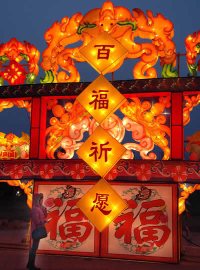 為豐富北京市民春節(jié)期間的文化活動(dòng),2006春節(jié)大型文化燈會(huì)將于1月29日至2月14日在北京朝陽(yáng)公園舉行。這是繼1988年北京北海公園舉行的燈會(huì)后,又一次大型文化燈會(huì)。本屆燈會(huì)以“中國(guó)人、中國(guó)心、中國(guó)燈”為主題,以中國(guó)彩燈博物館和四川自貢燈會(huì)為班底,設(shè)計(jì)了40組頂級(jí)花燈、33組中型花燈、近千盞小型花燈。(新華社/陳樹根 攝)