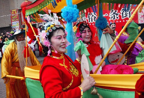 1月20日,演員在北京崇文門街頭舉行的“民俗一條街”開街儀式上表演。據(jù)了解,當(dāng)?shù)匾患疑虉?chǎng)舉辦“民俗一條街”活動(dòng),通過(guò)剪紙、捏面人等絕活表演和年貨展銷等活動(dòng),向人們展示豐富多彩的民俗文化。(新華社/羅偉 攝)