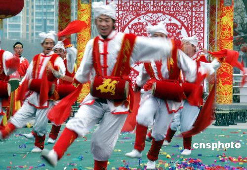 1月28日,第23屆北京龍?zhí)稄R會(huì)正式拉開帷幕,本屆龍?zhí)稄R會(huì)緊扣“和諧過節(jié)、喜迎奧運(yùn)”主題,為廣大市民和游客準(zhǔn)備了8大類160余項(xiàng)精彩紛呈的文娛活動(dòng),其中“喜迎奧運(yùn)”成為本次廟會(huì)最大看點(diǎn)。(中新社/樊甲山 攝)