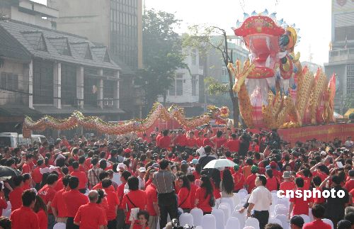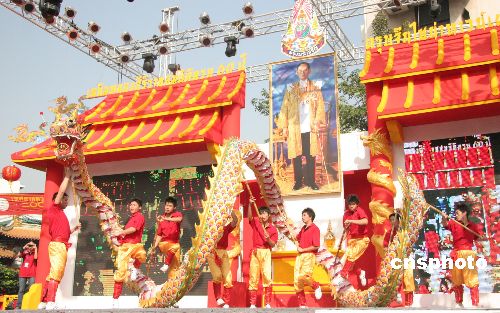 泰國華僑華人眾多,春節(jié)習俗由此在這里世代傳承,唐人街春節(jié)盛會也年年舉行。今年適值泰皇登基六十周年,春節(jié)盛會又成為了泰國慶祝泰皇登基六十周年的第一項正式活動,有泰國旅游體育部、曼谷市政府、中國駐泰大使館、泰國國家旅游局等部門參與舉辦,中國還派出政府文化代表團躬逢其盛。
