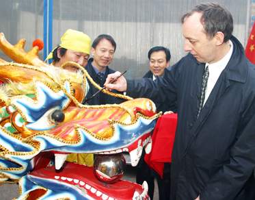 當(dāng)天上午,歐拜赫維里耶市長布德先生(Pascal Beaudet)與僑領(lǐng)們來到市政廳廣場(chǎng),為兩條“金色彩龍”點(diǎn)睛,并向華商們表達(dá)了美好祝愿。中國駐法使館領(lǐng)事部李京生一等秘書出席慶;顒(dòng)。
