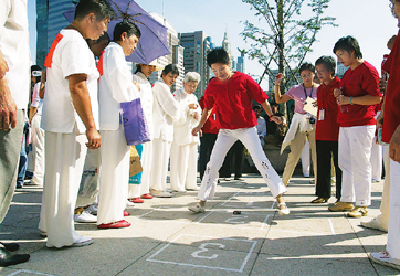 華聲報上海消息:2月12日,浦東世紀公園上演了一場聲勢浩大的傳統(tǒng)弄堂游戲比賽。幾百對父母帶領(lǐng)他們的孩子玩起了上世紀五六十年代的弄堂游戲,在擁抱傳統(tǒng)中歡度今年的元宵節(jié)。“打彈子、抽陀子、摜結(jié)子、刮片子、踢毽子、滾圈子、跳房子、盯核子、拉鈴子”。