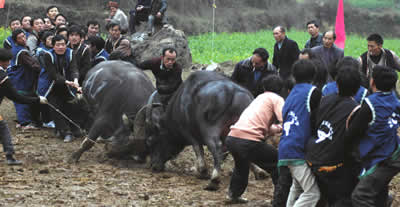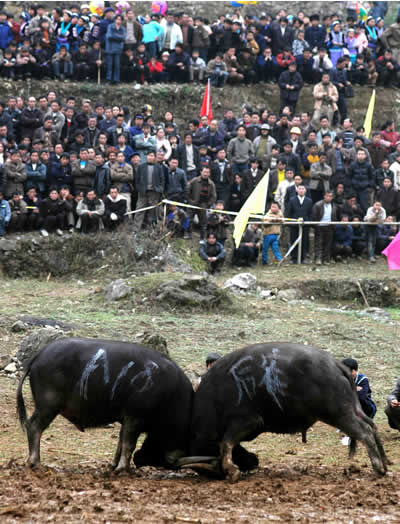 華聲報消息:據大公網報道,2月22日,貴州省開陽縣高寨鄉(xiāng)舉行一年一度的斗牛節(jié)。四里八鄉(xiāng)的群眾來此觀看斗牛、斗鳥、斗雞、拔河等傳統(tǒng)比賽活動。當地的斗牛節(jié)已有上百年歷史。
