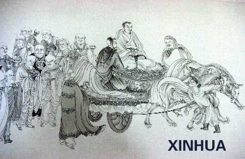 “我的轉(zhuǎn)向畫(huà)釋道人物,主要是因?yàn)樽诮倘宋锂?huà)在臺(tái)灣比較有市場(chǎng),我是殘疾人,必須靠賣(mài)畫(huà)來(lái)維持家計(jì),另一方面也由于對(duì)佛學(xué)有愛(ài)好,可在里面找到心靈的寄托”,他說(shuō)。