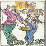 藝術(shù)風(fēng)格:木版套印、構(gòu)圖精巧豐滿、形象突出、主次分明、色彩鮮艷、印刷粗獷、裝飾色彩濃郁。