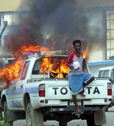 華聲報(bào)霍尼亞拉消息:所羅門群島星期二(4月18日)發(fā)生選舉暴力事件殃及華人,暴徒放火焚燒華埠商店,并打傷六名澳洲維持和平人員。肇事者都是總理競(jìng)選的落敗候選人的支持者,他們惱怒之余,遂發(fā)動(dòng)打砸搶。