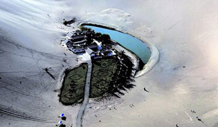 “像一個生命即將走到盡頭的老婦人!崩蠲\——敦煌市外宣辦主任——這樣形容今天的月牙泉。