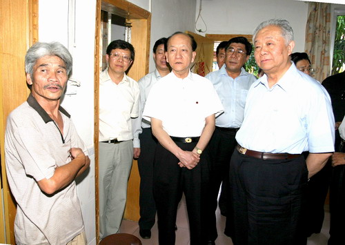 盛華仁深入到歸僑葉松柏、林湘云家中,與他們拉家常,了解他們的生產(chǎn)生活情況,F(xiàn)年61歲的葉松柏是印尼歸僑,1961年回國,全家8口人,大兒子從事汽車運輸業(yè),大兒媳當(dāng)護士,二兒子從事會計工作。進得家來,剛一落座,盛華仁就拉起葉松柏的手,親切地問他:“你平時種地還是在工廠做工?”葉松柏說:“我原來在農(nóng)場的一個加工廠工作,現(xiàn)在和老伴都退休了!薄巴诵萘丝渴裁瓷睿俊笔⑷A仁接著問。“領(lǐng)養(yǎng)老金,兩個人加起來一個月2000多元!比~松柏答道!2000多塊夠花嗎?”盛華仁又問。葉松柏說:“夠!笔⑷A仁聽后臉上露出欣慰的笑容。