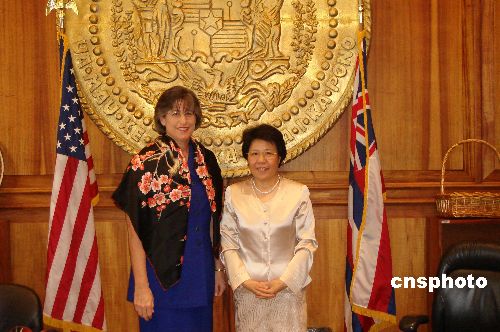 中新社夏威夷五月三十日電(記者 劉小青)中國國務(wù)院僑務(wù)辦公室主任陳玉杰今天率團(tuán)抵達(dá)夏威夷,開始為期八天的美國之行。當(dāng)?shù)貢r間三十日下午,夏威夷州州長琳達(dá)·林格爾在州政府會見了陳玉杰主任一行。
