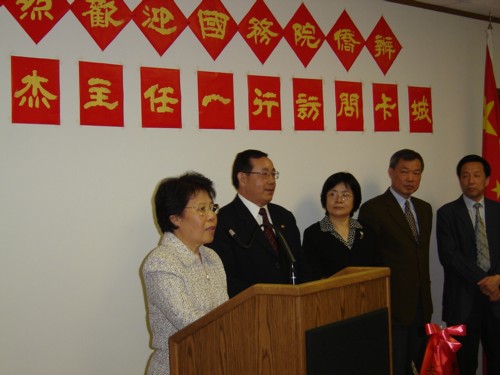陳玉杰在講話中詳細(xì)介紹了中國(guó)目前經(jīng)濟(jì)發(fā)展?fàn)顩r及構(gòu)建和諧社會(huì)的前景目標(biāo),感謝海外華僑為此做出的努力及貢獻(xiàn),鼓勵(lì)他們多回國(guó)走走、看看,尋求更多的發(fā)展機(jī)會(huì)。她高度贊揚(yáng)卡城華人團(tuán)結(jié)一心為反獨(dú)促統(tǒng)做出的不懈努力,希望他們將愛(ài)國(guó)主義精神發(fā)揚(yáng)廣大,為最終實(shí)現(xiàn)祖國(guó)的和平統(tǒng)一大業(yè)做出新的貢獻(xiàn)。