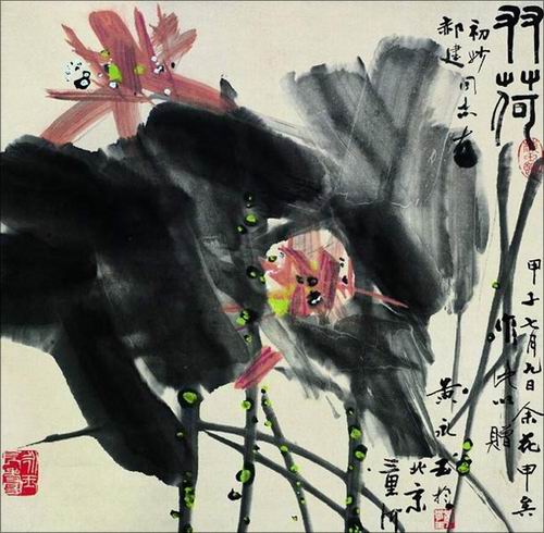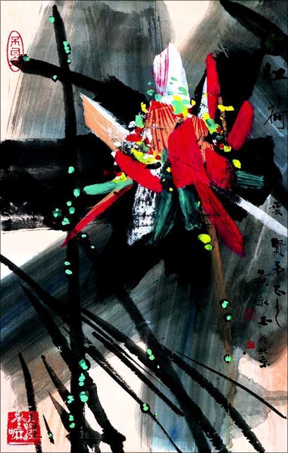 黃永玉筆下的荷花是具有獨特風格的,它們沒有給人那種非常清高、出世的感覺,而是一種很絢麗、很燦爛的氣質(zhì)。他曾開玩笑說荷花從哪兒長的,從污泥里面長的,什么是污泥呢?就是土地摻了水的那個叫做污泥,是充滿養(yǎng)料的那種土。