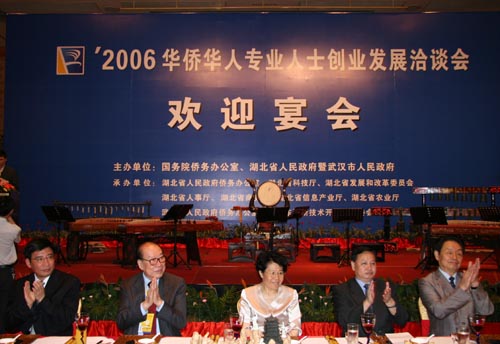華聲報武漢訊(記者 唐偉杰) 6月26日晚,湖北省委、省政府在漢口香格里拉飯店舉辦招待宴會,歡迎來此間參加2006年華僑華人專業(yè)人士創(chuàng)業(yè)發(fā)展洽談會(簡稱“華創(chuàng)會”)的代表。湖北省省長羅清泉在致辭中指出,“華創(chuàng)會”這一品牌活動已經(jīng)成為促進(jìn)華僑華人參與中部崛起的重要平臺。