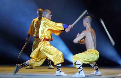 華聲報(bào)北京消息:7月10日晚上,全新大型舞臺(tái)功夫劇《寺院內(nèi)外》全球巡演終于在保利劇院拉開了序幕,令不少首次看到該節(jié)目的中國觀眾連連稱贊,童子功、集體拳、旗陣、醉功、盾牌刀、象形功等少林絕技的展示,更讓觀眾目不暇接。