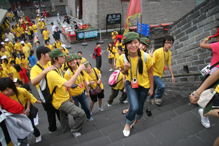 7月19日,2006海外華裔及港澳臺(tái)地區(qū)青少年尋根之旅夏令營(yíng)的小營(yíng)員們來(lái)到了有天下第一雄關(guān)之廠的居庸關(guān)長(zhǎng)城,不畏險(xiǎn)阻,紛紛登頂,做了一回“好漢”!