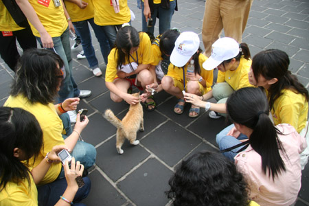 | 一只突然出現(xiàn)的小野貓勾起了孩子們的愛(ài)心。 |