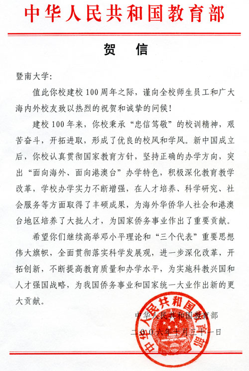 教育部賀信