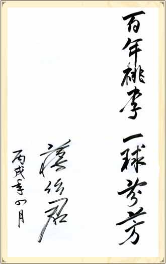 蔣作君題詞:百年桃李 一球芬芳