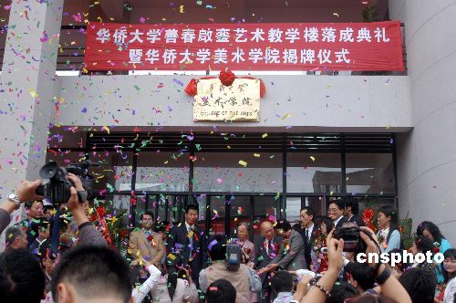 華聲報(bào)泉州訊(陳添地)11月22日,華僑大學(xué)善春啟鑾藝術(shù)教學(xué)樓落成暨華大美術(shù)學(xué)院揭牌儀式舉行。福建省僑聯(lián)副主席江宏真,泉州市有關(guān)領(lǐng)導(dǎo)潘燕燕、陳秋菊,華大領(lǐng)導(dǎo),捐資者莊善春、鄭啟鑾伉儷率其旅居菲律賓、澳大利亞、英國、南非、日本及香港等地親屬蒞臨華大出席落成剪彩儀式。