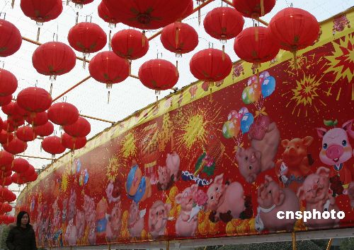 2月5日,一幅長(zhǎng)37米,上面繪有100生肖豬的噴繪畫在南京山西路廣場(chǎng)亮相。這100只生肖豬憨態(tài)可掬,姿態(tài)各異,給人們帶來(lái)了喜慶和吉祥。春節(jié)臨近,南京街頭張燈結(jié)彩,到處充滿濃濃的年味。(中新社/文寶 攝)