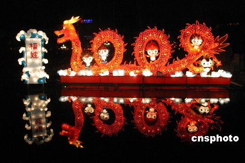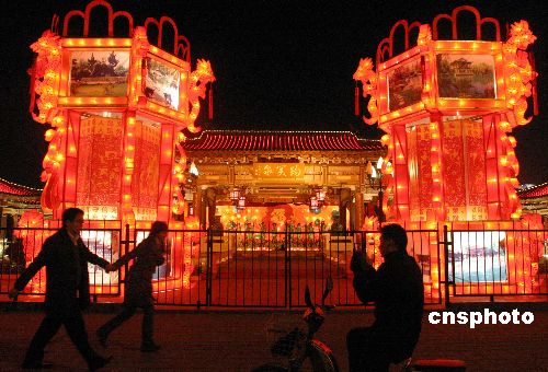 2月13日晚,在濟南市趵突泉景區(qū),游客們在欣賞特大宮燈。當(dāng)晚,濟南市趵突泉第28屆迎春花燈會舉行開燈儀式。(中新社/龔輝 攝)