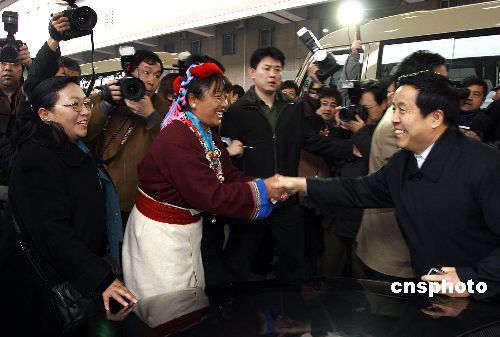2月28日上午,參加十屆全國人大五次會議和全國政協(xié)十屆五次會議的部分西藏代表和委員,乘坐火車通過青藏鐵路抵達(dá)北京。2006年7月1日,舉世矚目的青藏鐵路正式開通運營,結(jié)束了西藏沒有鐵路的歷史。本次西藏參加全國兩會的代表和委員是首次乘坐火車通過青藏鐵路前往北京參加會議,也是今年即將開幕的全國兩會中,首批抵京的代表和委員。(中新社/劉新 攝)