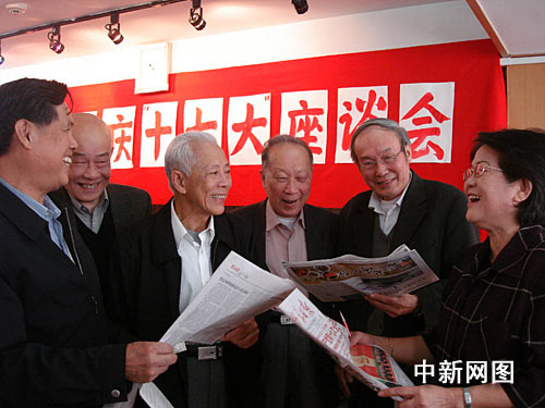 中共十七大召開之際,江蘇歸僑紛紛關(guān)注并熱烈討論十七大。由江蘇省僑聯(lián)主辦的“老歸僑歡慶十七大座談會(huì)”今天在華僑之家舉行,關(guān)注討論十七大報(bào)告,并祝福中國的未來更加繁榮昌盛。 丁梅 攝