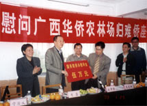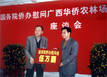 劉澤彭在廣西自治區(qū)高虎城副主席陪同下,到欽州市麗光華僑農(nóng)場慰問并贈送慰問金