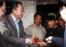 2003年1月25日劉澤彭副主任到欽州市麗光華僑農(nóng)場越南歸僑陳勝朋家中慰問,并勉勵(lì)陳勝朋的兒子要克服困難努力學(xué)習(xí)