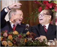 繼2002年2月美國總統(tǒng)布什訪華后,10月中國國家主席江澤民赴美訪問,兩國首腦在一年之內(nèi)兩度會晤,使得一度陰霾籠罩的中美關系云開霧散。