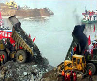 2002年11月6日上午9時(shí)48分,長(zhǎng)江三峽實(shí)現(xiàn)截流。大自然4000萬(wàn)年造化而成的長(zhǎng)江三峽景觀,由此被人的力量改變。 此次截流的成功標(biāo)志著三峽工程建設(shè)進(jìn)入了三期圍堰工程,三期圍堰建成之后,大壩才能蓄水,船閘才能通航,巨大的水輪發(fā)電機(jī)才能運(yùn)轉(zhuǎn)發(fā)電。 三峽工程這一世界上最大的水利樞紐工程其建設(shè)已歷10年,之間可謂風(fēng)雨征程,人們對(duì)三峽的未來(lái)滿懷希望,而三峽的未來(lái)之路仍然漫長(zhǎng)。 |