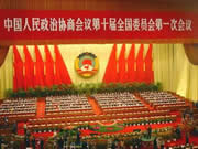 全國政協(xié)十屆一次會議3月14日閉幕。圖為大會會場 |