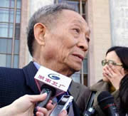 “雜交水稻之父”袁隆平備受記者關(guān)注(本報記者/劉郁菁) |