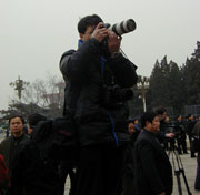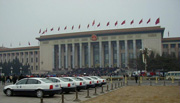 人民大會堂外保衛(wèi)兩會安全的警車 |