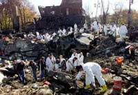 紐約消防隊員繼續(xù)清理墜機現(xiàn)場(圖文)