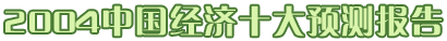2003年11月27日,上證報(bào)與國(guó)家信息中心聯(lián)合推出《2004中國(guó)經(jīng)濟(jì)十大預(yù)測(cè)報(bào)告》。報(bào)告認(rèn)為,2004年,中國(guó) 經(jīng)濟(jì)將承接2003年的發(fā)展勢(shì)頭,繼續(xù)保持高增長(zhǎng)態(tài)勢(shì)。國(guó)民經(jīng)濟(jì)有望增長(zhǎng)8.5%左右,經(jīng)濟(jì)增長(zhǎng)周期由復(fù)蘇階段向繁 榮階段發(fā)展。