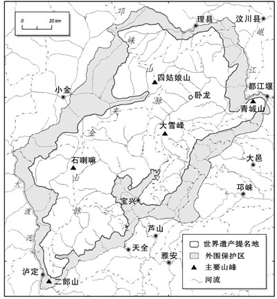 四川大熊貓棲息地主要位于大渡河與岷山之間,成都平原與青藏高原之間的邛崍山脈,南北長(zhǎng)180公里,東西寬40至70公里,涵蓋成都、雅安、阿壩、甘孜4市州12縣。該范圍涵蓋9個(gè)風(fēng)景名勝區(qū)和8個(gè)自然保護(hù)區(qū),面積9510平方公里,其中核心區(qū)面積5370平方公里,緩沖區(qū)為4140平方公里。此次被列入世界自然遺產(chǎn)的四川大熊貓棲息地面積9245平方公里,涵蓋范圍為邛崍山系的“臥龍·四姑娘山·夾金山”,目前全世界30%以上的野生大熊貓生活在那里,是全球最大最完整的大熊貓棲息地。
