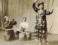 第二,廣泛利用道具。這些道具有:手絹、扇子、花綢、頭上戴的帽子、面具、腰里綁的腰鼓、腰鈴、腳踏的高蹺,以及各種道具如:傘、燈、刀、劍、棍等。