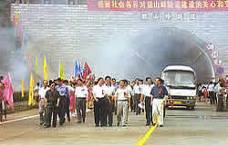 ![]() 省、市、區(qū)有關(guān)領(lǐng)導(dǎo)為朋山嶺隧道開通剪彩 |