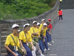 ![]() 滿載營(yíng)員的大客車(chē)來(lái)到人民大會(huì)堂前。 | ![]() 進(jìn)入大會(huì)堂參加夏令營(yíng)開(kāi)營(yíng)式之前,營(yíng)員們?cè)谔彀查T(mén)廣場(chǎng)留影。 | ![]() 營(yíng)員們列隊(duì)進(jìn)入人民大會(huì)堂參加夏令營(yíng)開(kāi)營(yíng)儀式。 | ![]() 營(yíng)員們興奮地在人民大會(huì)堂門(mén)前合影留念。 | ![]() 4000營(yíng)員齊聚人民大會(huì)堂參加夏令營(yíng)開(kāi)營(yíng)儀式。 | ![]() 來(lái)自香港的小營(yíng)員們?cè)陬U和園昆明湖畔合影。 | ![]() 營(yíng)員們?cè)陬U和園游覽時(shí)對(duì)長(zhǎng)廊中的繪畫(huà)十分感興趣。 | ![]() 來(lái)自香港的小營(yíng)員們?cè)谔靿砟甑钋昂嫌埃吆簟拔覑?ài)天壇”。 | ![]() 面對(duì)桌上聞名世界的北京烤鴨,小營(yíng)員們興奮不已。 | ![]() 小營(yíng)員們走進(jìn)故宮,感受中國(guó)皇家宮殿的雄偉與壯麗。 | ![]() 7月28日晚,小營(yíng)員們觀看了中國(guó)雜技表演,圖為舞獅表演。 | ![]() 小營(yíng)員們登上居庸關(guān),笑言“終于做成了好漢”。 | ![]() 雨中登長(zhǎng)城更具趣味,營(yíng)員們?cè)诰佑龟P(guān)前合影。 | ![]() 長(zhǎng)城太長(zhǎng)了,爬累了的小營(yíng)員們倚靠在垛口上休息。 | ![]() 第一次登上長(zhǎng)城,營(yíng)員們彼此間交流著自己的感受,分享喜悅。 | ![]() 奔跑在長(zhǎng)城上是怎樣的一種感覺(jué),小營(yíng)員們的興奮與激動(dòng)無(wú)法用語(yǔ)言表達(dá)。 | ![]() 感受長(zhǎng)城的雄奇與險(xiǎn)要,小營(yíng)員們步步謹(jǐn)慎。 | ![]() 第一次登上長(zhǎng)城,自然要把自己的笑臉留在這里。 | ![]() 爬完了長(zhǎng)城,營(yíng)員們紛紛合影留念。 | ![]() 海內(nèi)外青少年聯(lián)歡晚會(huì)上,營(yíng)員們展示了自己學(xué)習(xí)中華武術(shù)所取得的成績(jī)。 | ![]() 來(lái)自澳門(mén)的小營(yíng)員們傾情演唱《七子之歌》。 | ![]() 航天英雄楊立偉作為神秘嘉賓出現(xiàn)在晚會(huì)現(xiàn)場(chǎng),掀起晚會(huì)的最高潮。 | ![]() 所有演員和嘉賓以及僑辦領(lǐng)導(dǎo)登臺(tái)共唱《同一首歌》。 | ![]() 日本山西同鄉(xiāng)會(huì)營(yíng)員在天安門(mén)前觀看升旗儀式后,與剛剛升起的國(guó)旗合影。 |