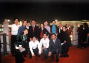 國務院僑辦主任郭東坡(后排左四)和北京華文學院師生在天安門城樓上歡度國慶。