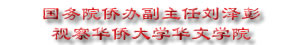 本報訊:中國國務院僑辦副主任、華僑大學董事會副董事長劉澤彭一行4人,10月15日下午赴廈門集美視察了華僑大學華文學院。 在華文學院,劉澤彭察看了學院新近收回的歷史遺留校舍和學校土地,詳細詢問了校舍的歷史、用途和收回土地的面積、使用規(guī)劃等,劉澤彭指出,要結(jié)合華文學院的整體規(guī)劃考慮這些土地和校舍的建設與使用。 劉澤彭一行還來到學生宿舍,與學生親切交談,詳細了解同學們的學習和生活情況,劉澤彭對華文學院為學生提供良好的學習生活環(huán)境表示滿意。 在華文學院新建的綜合樓,劉澤彭一行參觀了樓內(nèi)的文化娛樂等場所,認真聽取了學院領(lǐng)導對大樓功能、設施等的介紹;劉澤彭要求華文學院,不僅要不斷提高辦學水平,努力為海外華僑華人服務,還要建設具有華文學院特色的校園文化,活躍同學們的課余生活。